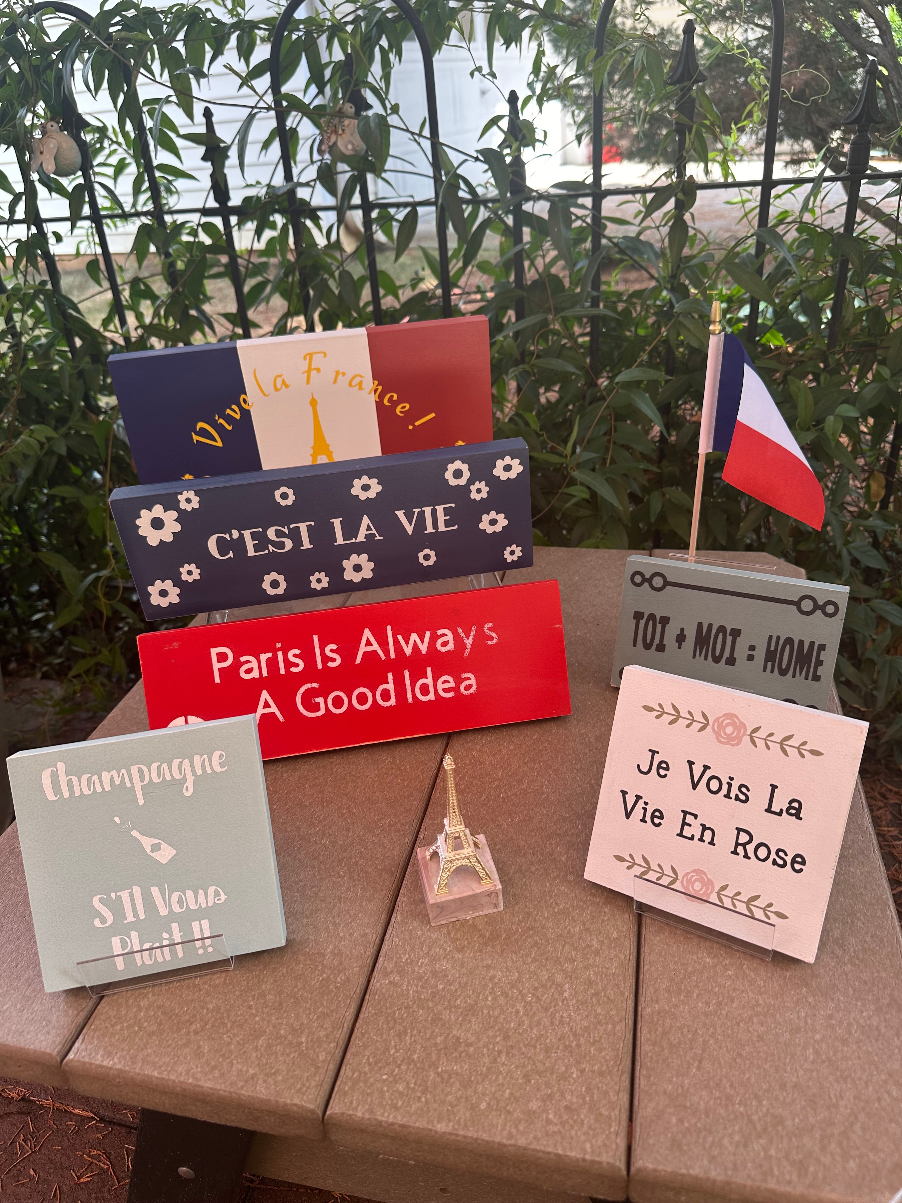 Celebrate your love for all things French with our enchanting French Connection Collection! Featuring whimsical, handmade painted signs, this charming collection brings the elegance and romance of Paris straight to your home. Perfect for adding a touch of joie de vivre to your space or gifting to the Francophile in your life!