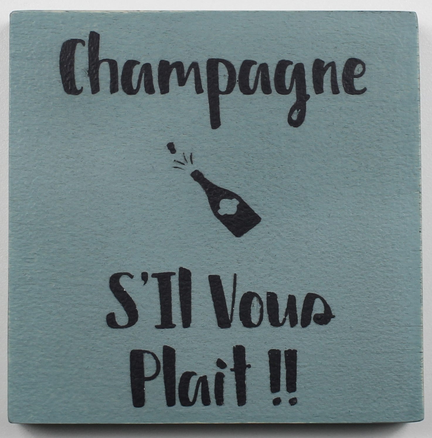 Garçon, Champagne Please! Close your eyes and imagine yourself in the South of France! Elevate your walls or furniture with our hand painted 'Champagne S'il Vous Plait' Wooden 5X5 Box Sign - available in a spectrum of stunning colors.