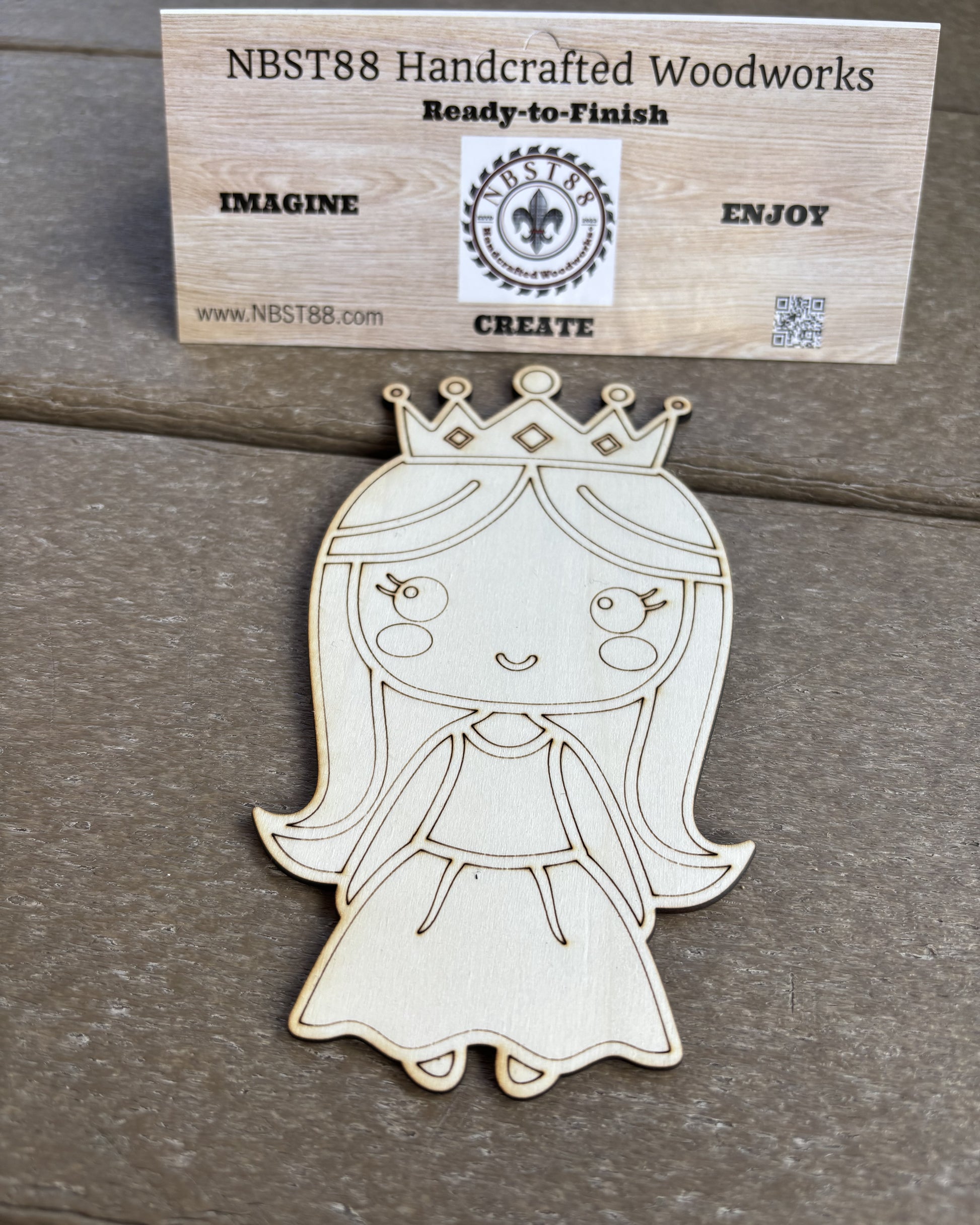 Crafted from smooth, unfinished wood, she’s ready for you to paint, glitter, or decorate however your royal heart desires. From dreamy pastels to bold, regal colors — the creative possibilities are endless!