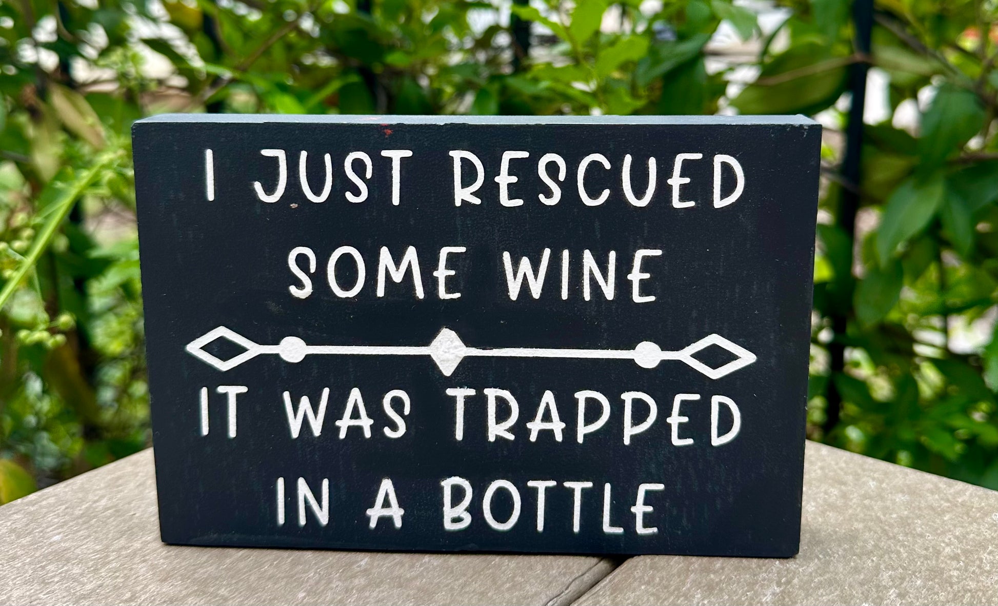 Wine Rescuer at the ready! Display your proud accomplishment with our black hand-painted wooden box sign (approx. 4" x 6"). The perfect gift for those who have everything already!!!