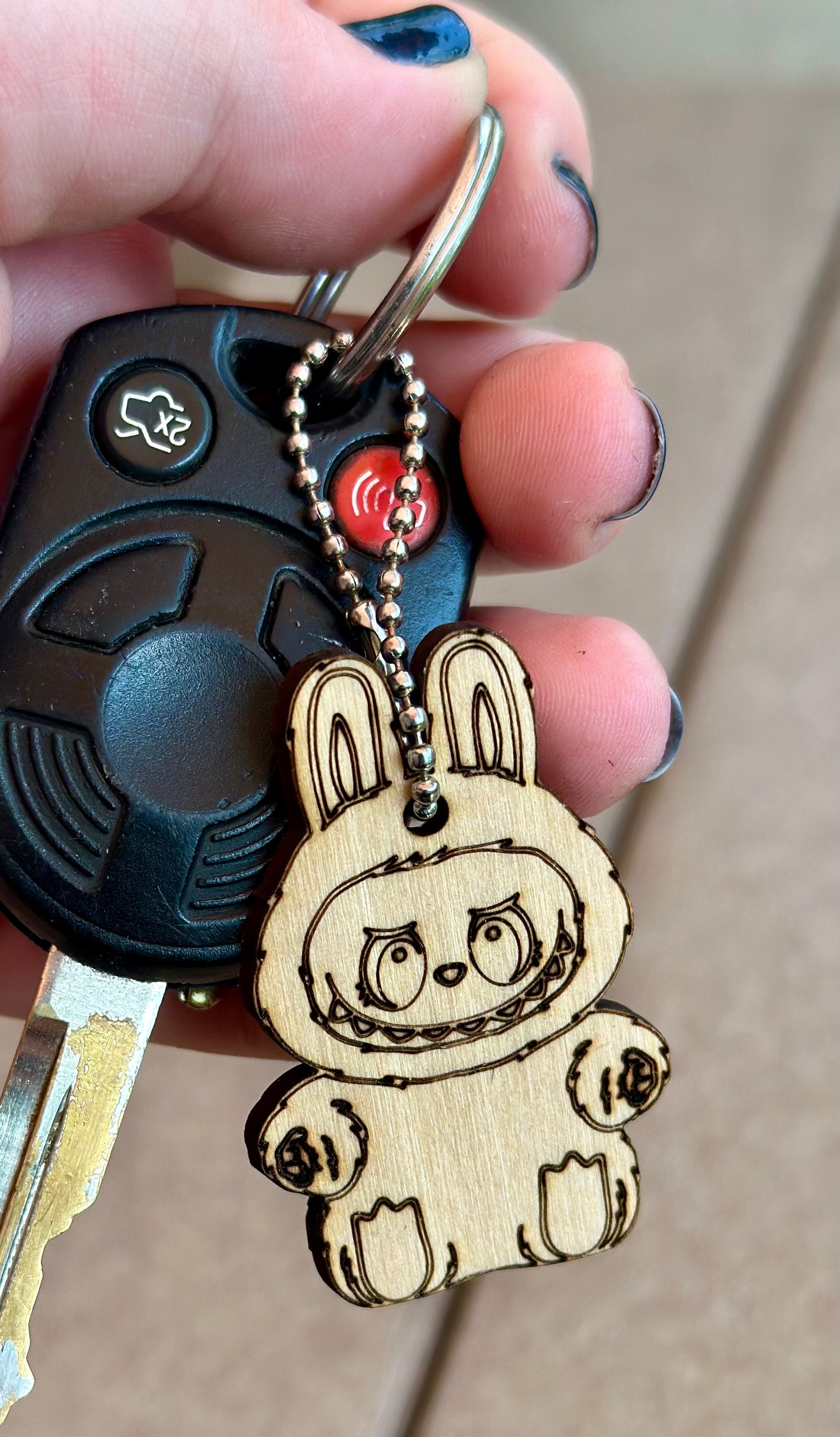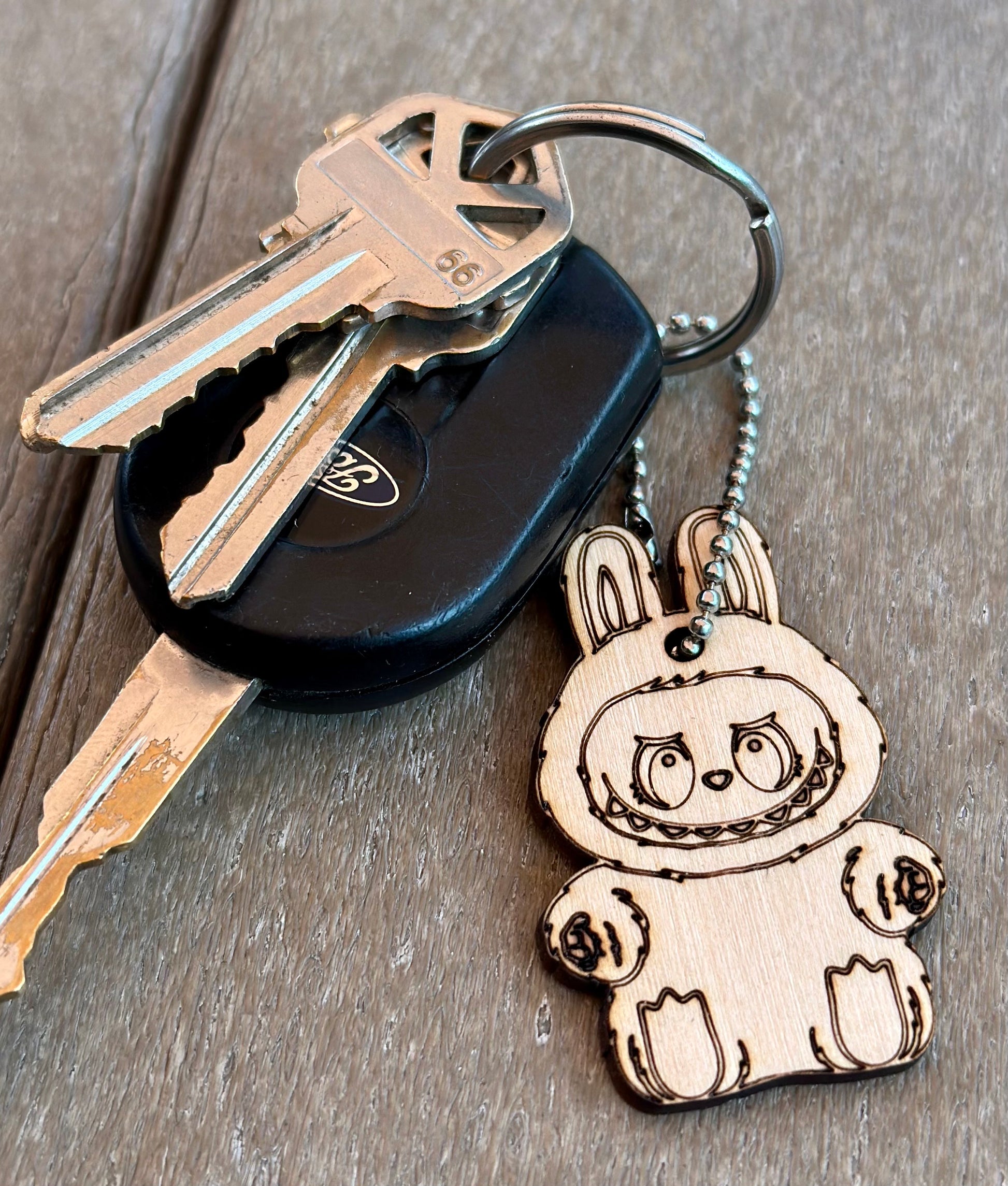 Labubu Wooden Key Ring Charm