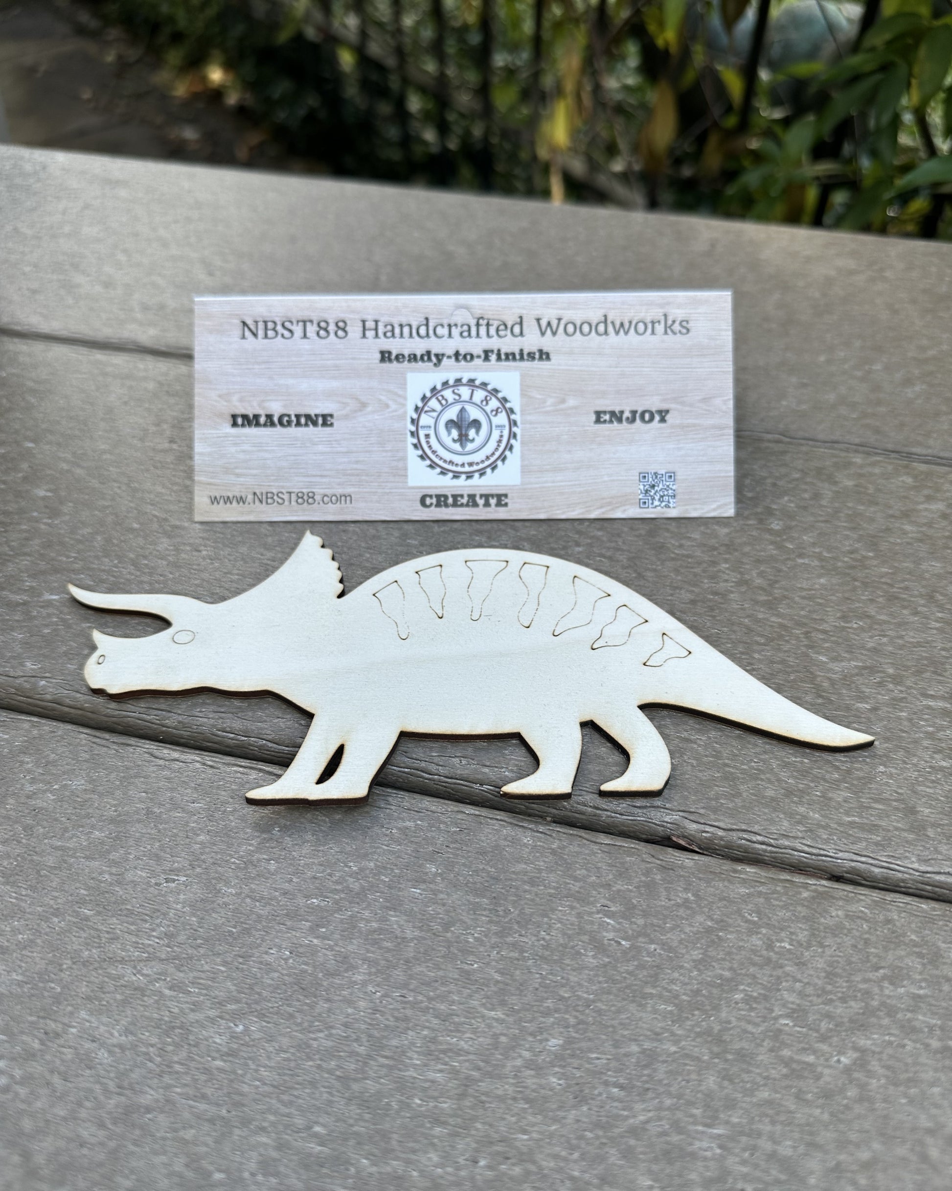 Roar into creativity with our Triceratops wooden figurine—ready to finish!