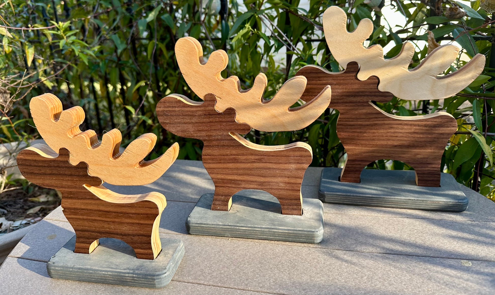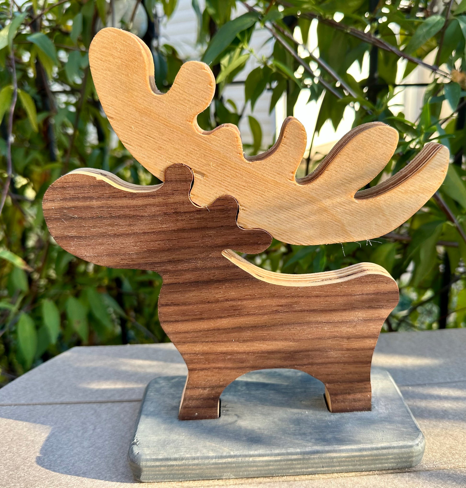Command attention with this colossal, hand-carved moose, a breathtaking centerpiece for your holiday décor. Crafted from rich, dark walnut, this woodland wonder is a bold and dramatic addition to any space. Round up the herd and create a truly unforgettable holiday display!